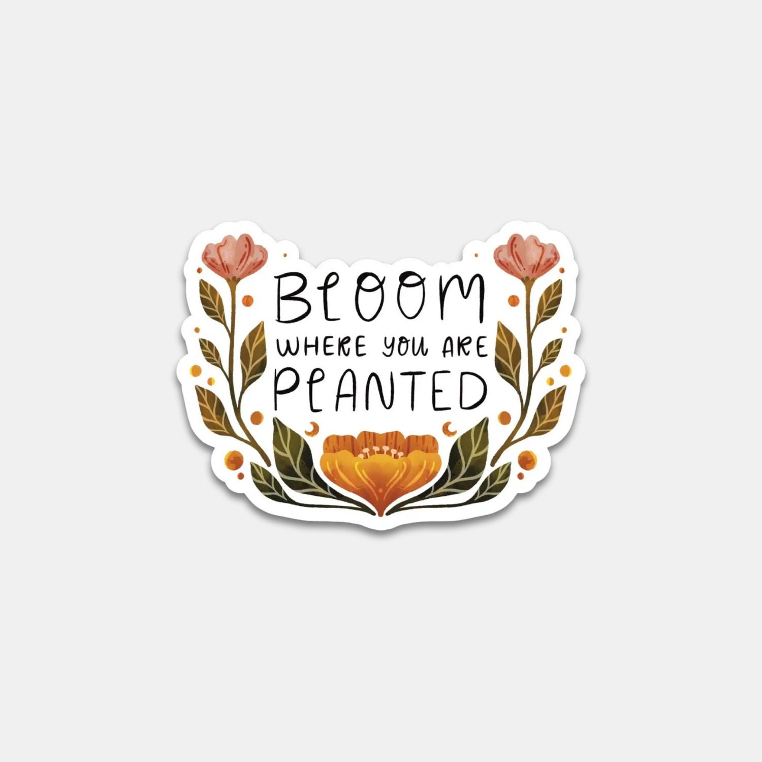 Stay rooted and bloom beautifully with our BLOOM WHERE YOU ARE PLANTED STICKER! Illustrated with flowers, this sticker serves as a perfect reminder to embrace where you are and thrive.
