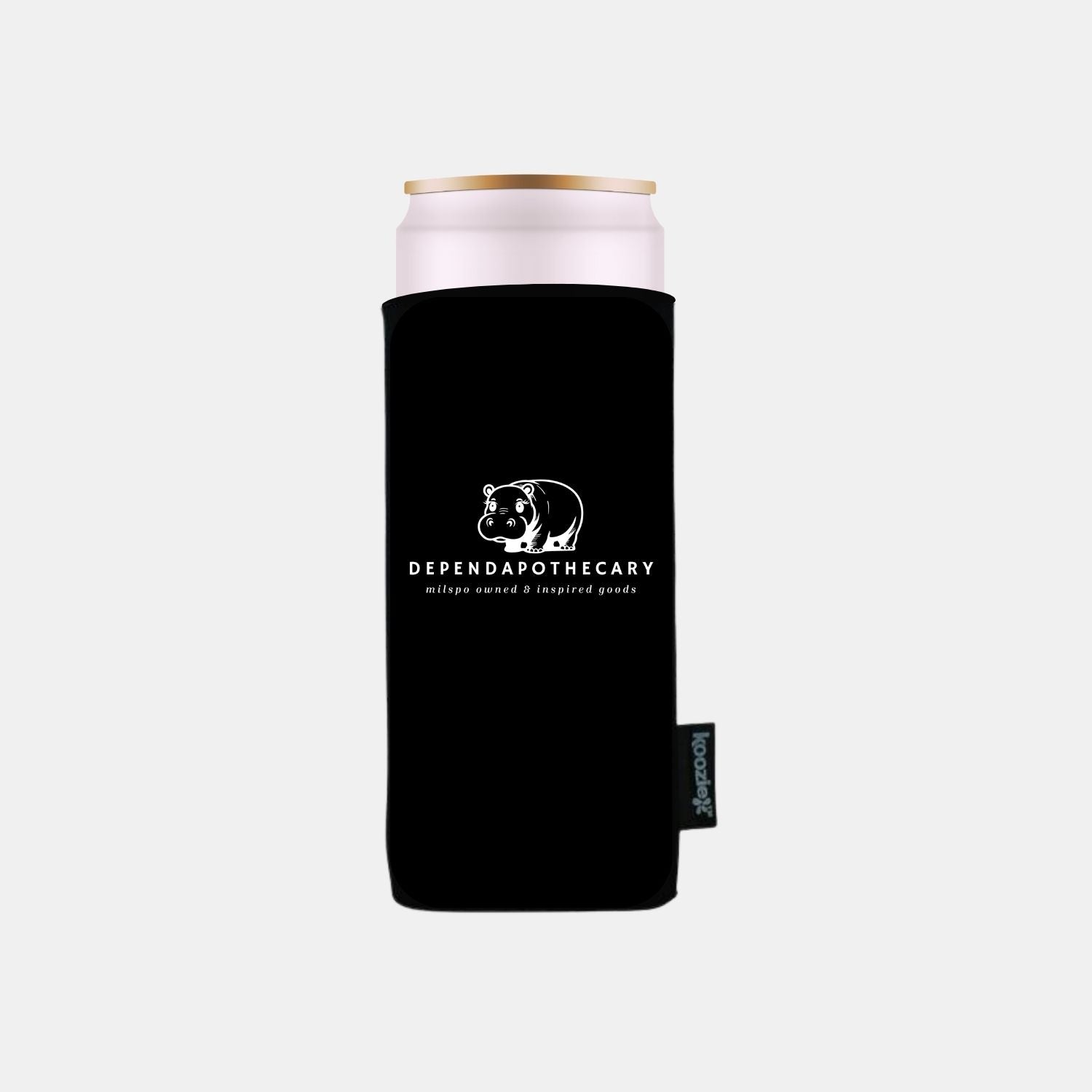 Keep your slim cans of seltzer cool with our Dependapothecary Koozie! Featuring our adorable hippo logo, this black Koozie is perfect for all the basic dependas out there. Don't just keep your drink cool, keep it cute too!