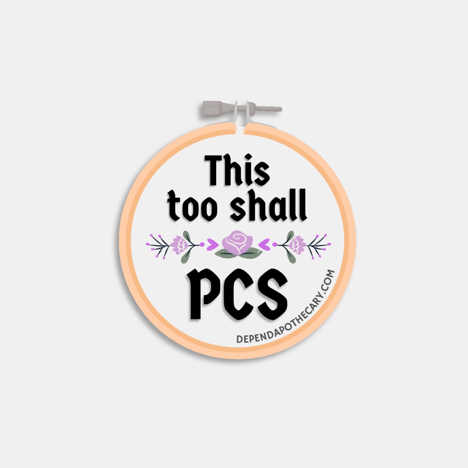 The only certainty about military life is that it is uncertain. Our THIS TOO SHALL PCS STICKER celebrates new adventures and fresh starts. Leave the old behind and look on the bright side, nothing stays the same for too long.